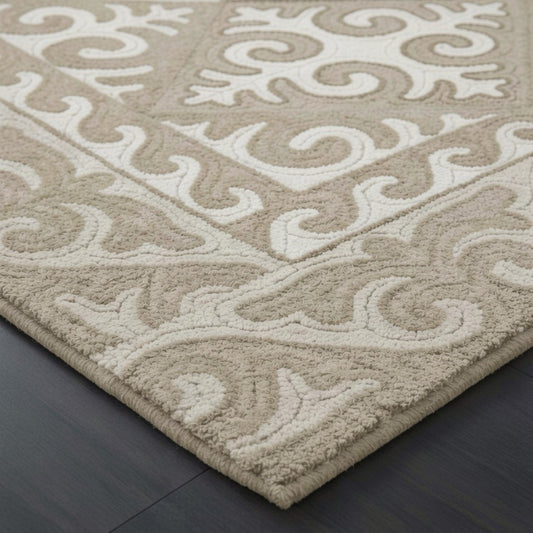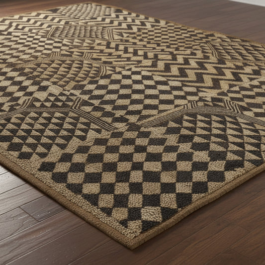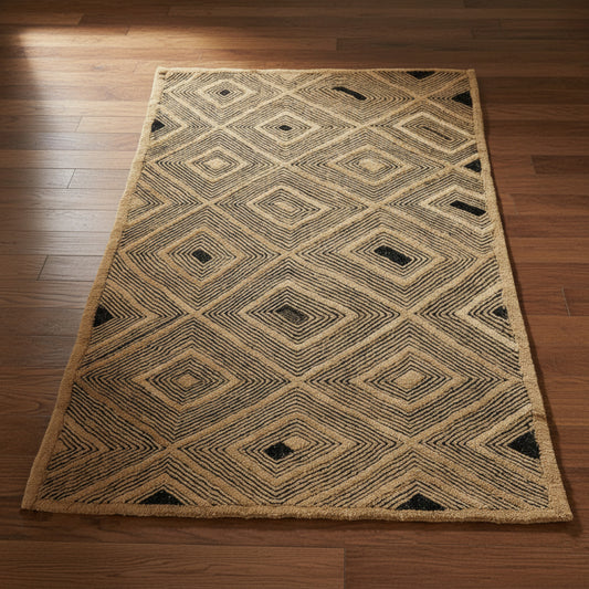 Moroccan Hand Tufted Wool Blend Carpet - Beige & Black Diamonds