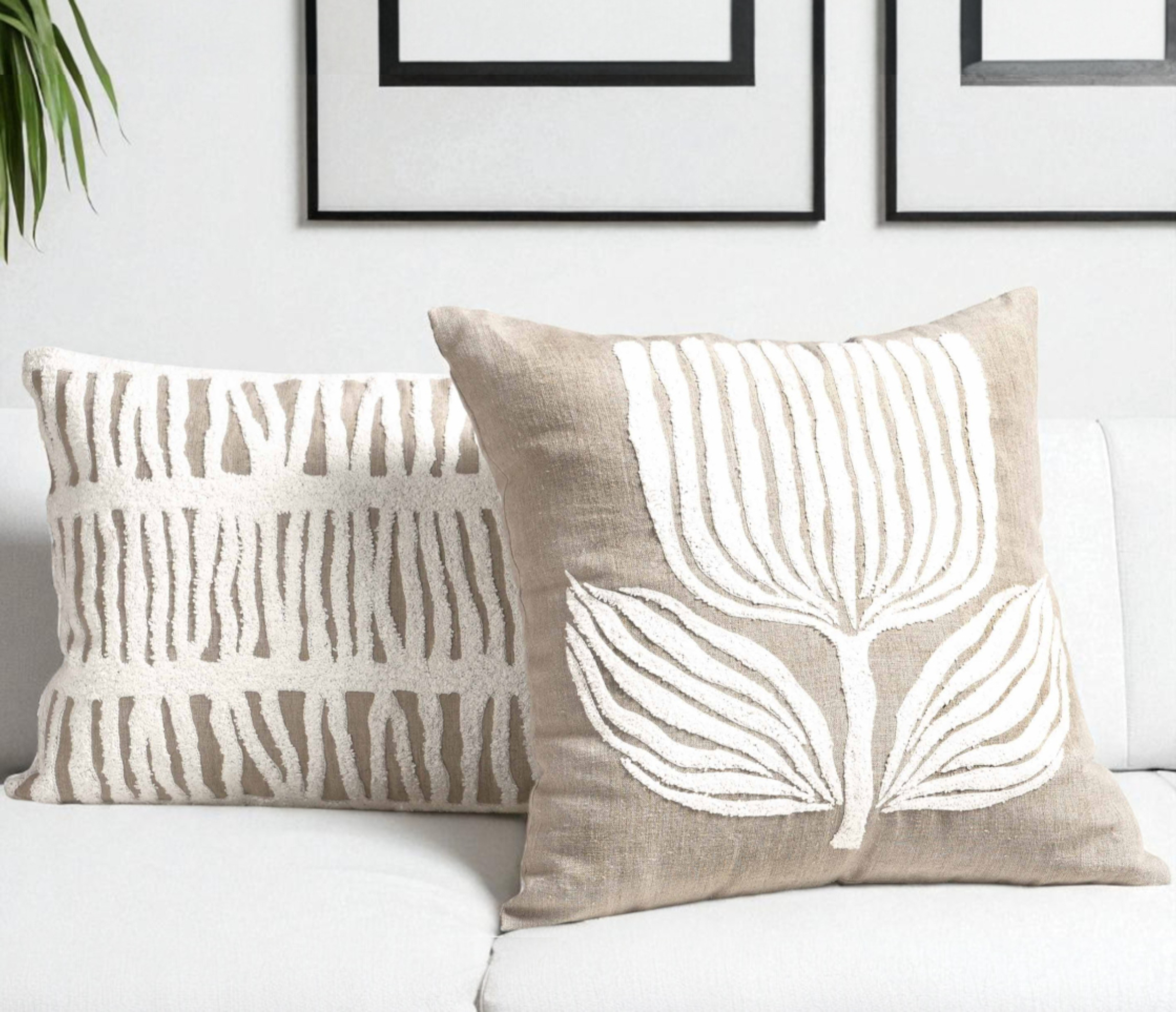 ZULU - Tufted off white and Beige Throw Pillow Cover, 18X18 inches - Zulu Collection
