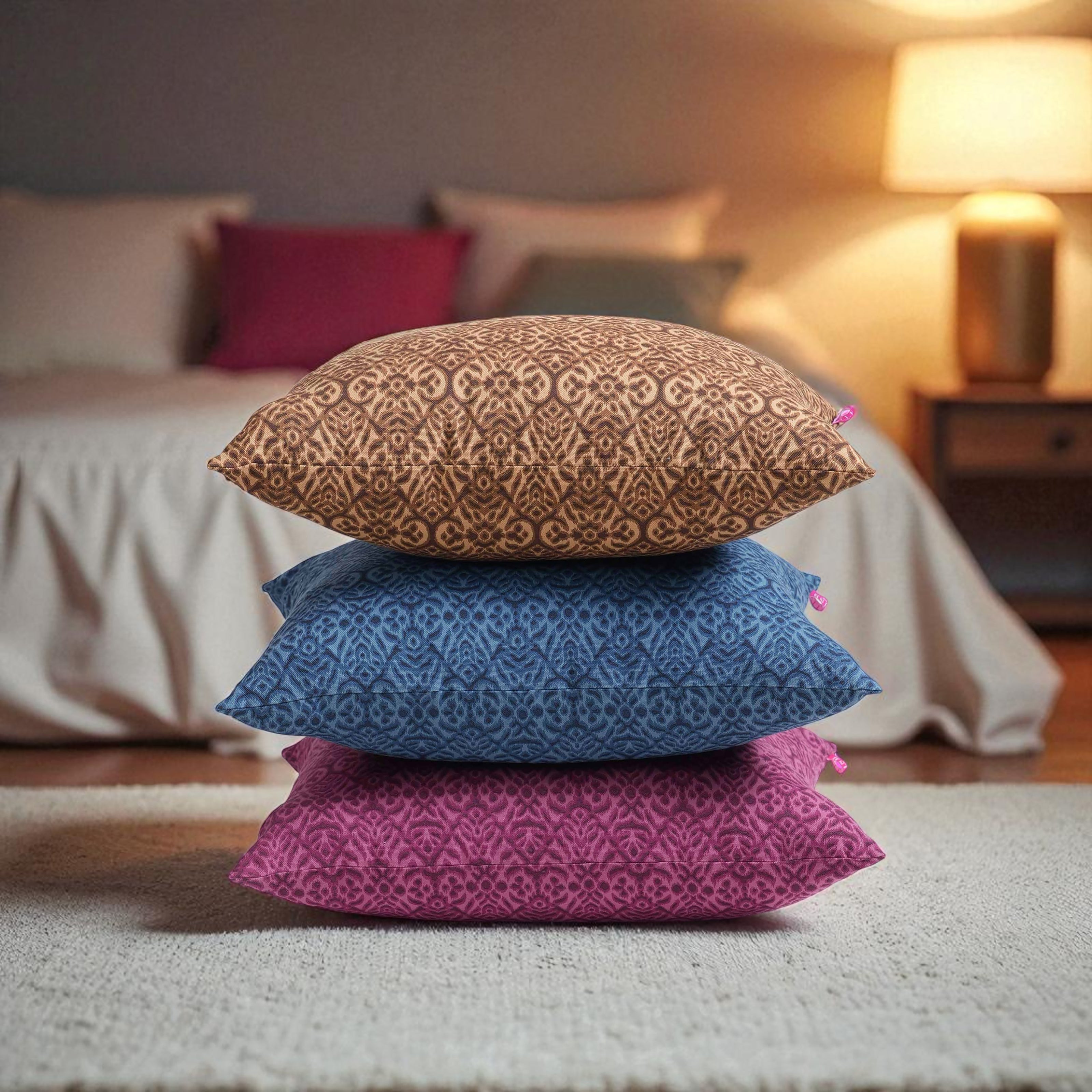 MATYO - Embroidered Square cotton Pillow cover with red micro pompom lace, sizes available