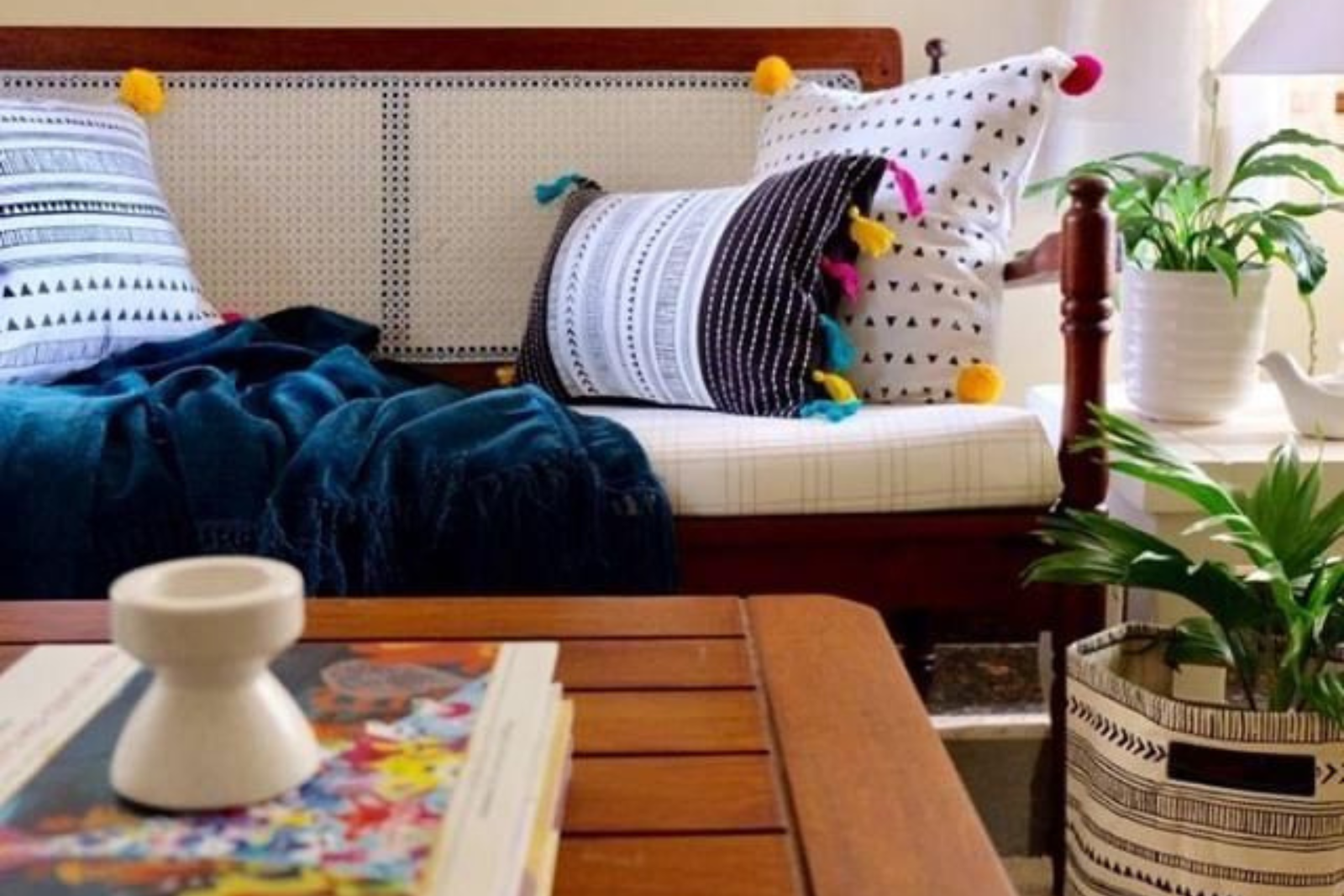 - Layer with Texture: Combine the softness of hand-stitched Kanthas with the tactile warmth of wicker, linen, and natural fibres.