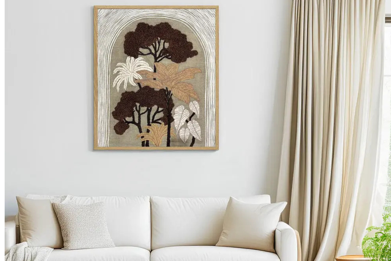 Our botanical textile wall décor, framed in teak wood, has become a modern festive favourite. Arranged in clusters, it brings a touch of nature indoors - symbolizing harmony, abundance, and renewal. Pair these pieces with canvas baskets, quilted bags, textured cushions, and natural fibre throws to create an inviting mix of color and craftsmanship.