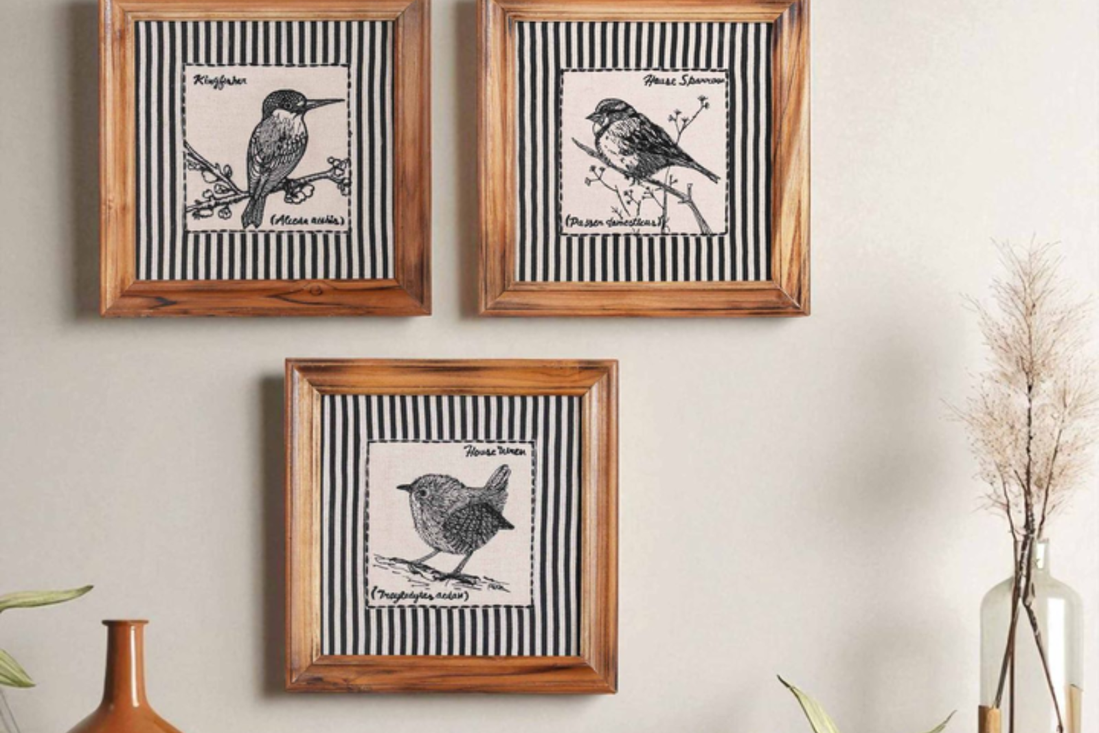 A well-designed living room is more than the furniture and floor; it’s a composition of textures and layers. Walls, too, carry narrative weight. At VLiving, our collections extend beyond paintings and prints into textile wall art woven, embroidered, and tactile pieces that echo the softness of your furnishings.