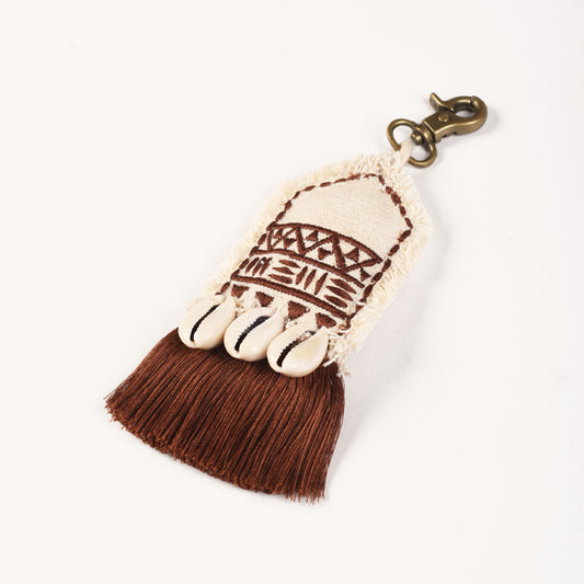 Tribal tassel, handmade, boho bag charm, gypsy charm with cowrie