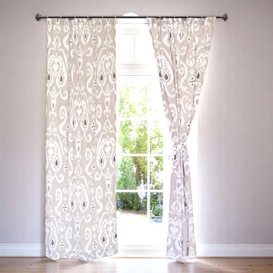 Ikat - Sheer cotton ikat print curtain panel in grey colour.