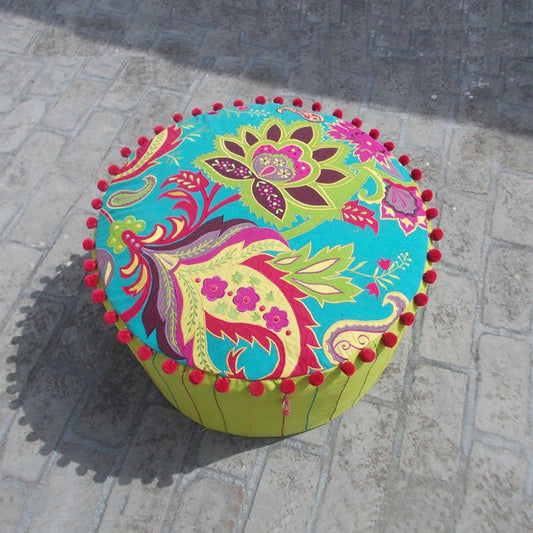 GONDAL ART Linen pillow cover, peacock motif, appliqued and embroidered pillow, size 16X16 inches