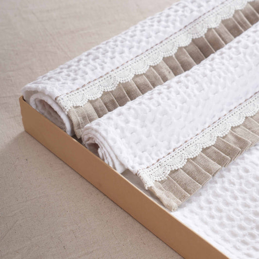 GIFT PACK - Luxury Organic Cotton Waffle Towel Set – 3 Piece | Gathered Linen & Lace Trim