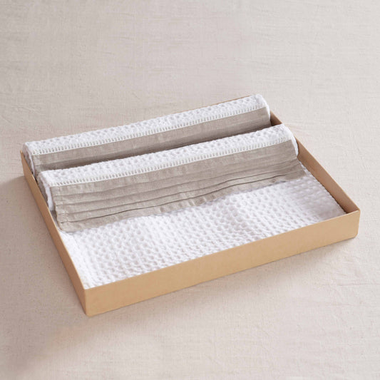 GIFT PACK - Luxury Organic Cotton Waffle Towel Set – 3 Piece | Pintuck Linen & Lace Trims