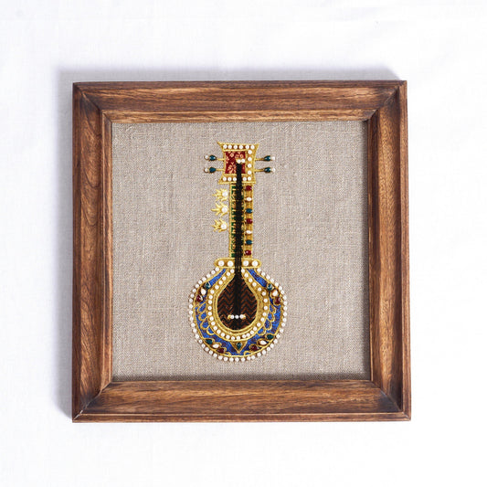 SITAR Musical instrument wall art, embroidery and applique in hoop OR teak wooden frame