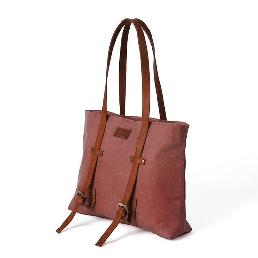 Brick Red waxed canvas yoga bag, gym bag, leather adjustable straps, 16X13X4 inches