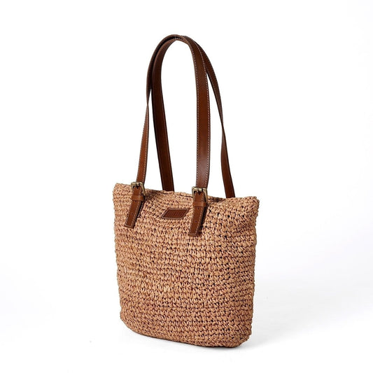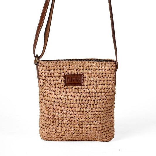 Natural colour Rafia/straw sling bag with adjustable leather handle