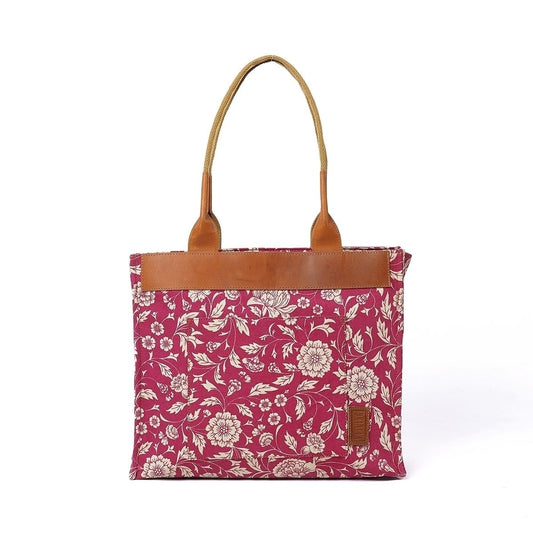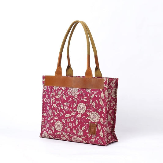 Marsala print cotton and leather tote bag, large tote, shoulder bag