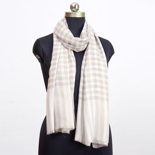 CHECK fine wool blend scarf for men, beige and black colour, reversible, gift for men