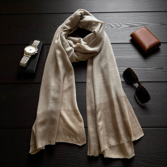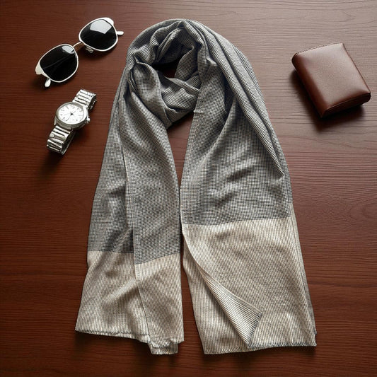 CHECK fine wool blend scarf for men, beige and black colour, reversible, gift for men
