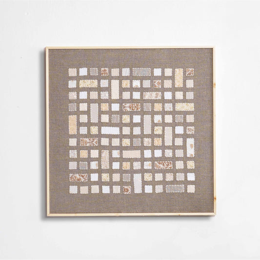 Neutral Patchwork Textile Wall Art – 24 x 24 inches, Unframed