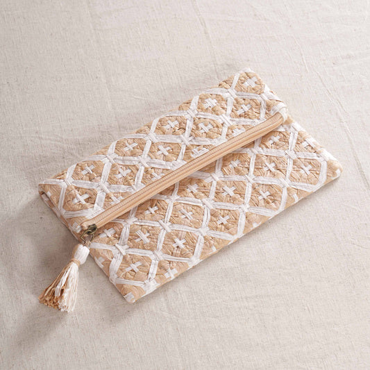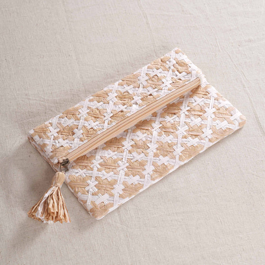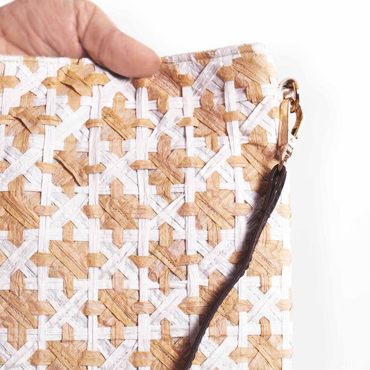 FAUX RAFFIA Foldover Clutch – Hand Interlaced Wicker Weave of Cross Pattern | 6.5” x 10”