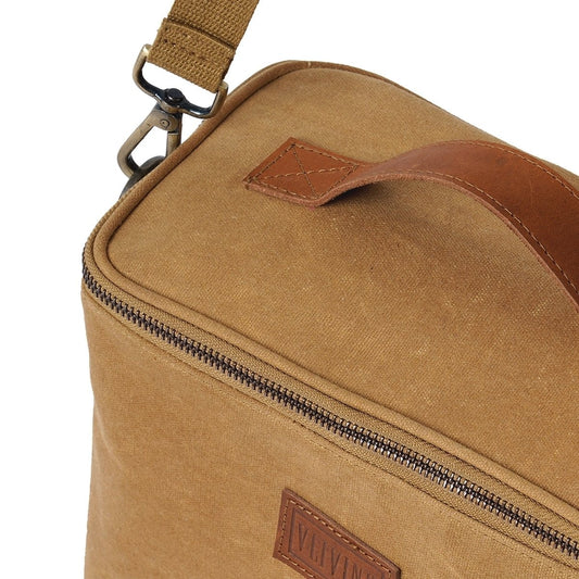 Sand Brown waxed canvas lunch bag, snack bag, with insulation lining, 9.5X8.5X5 inches