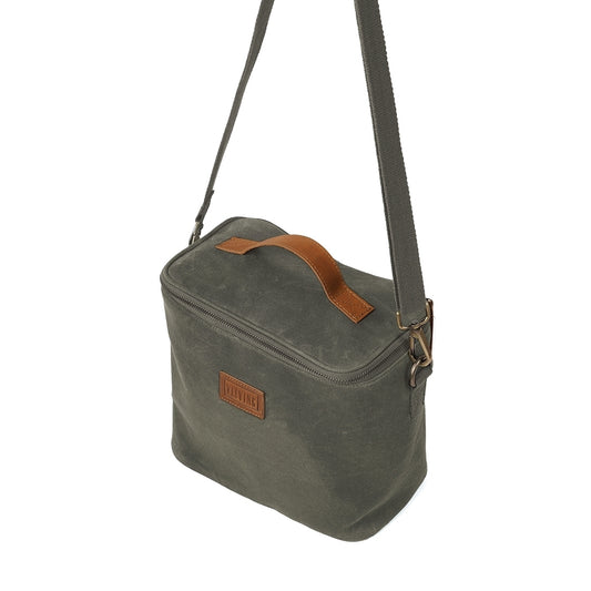 Olive Green waxed canvas lunch bag, snack bag, with insulation lining, 9.5X8.5X5 inches