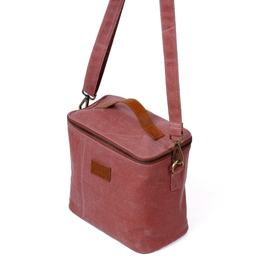 Brick Red waxed canvas lunch bag, snack bag, with insulation lining, 9.5X8.5X5 inches