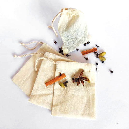 3"X 4" Pure Cotton Spice Pouch, Biodegradable and Reusable Premium Quality Muslin Drawstring Bag