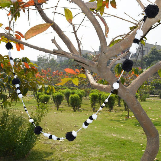Pompom garland, black and white, handmade, gift, bohemian, home decor, size 1 mt