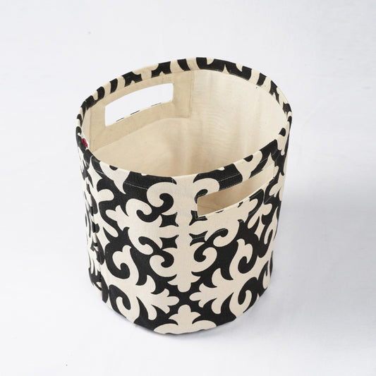Canvas storage basket, shyrdak print in black and white, sizes available