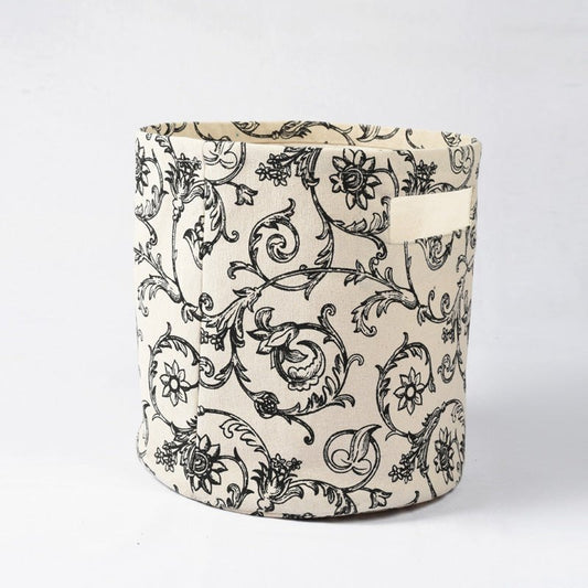 Storage basket, cotton canvas fabric, floral print, black and white, sizes available
