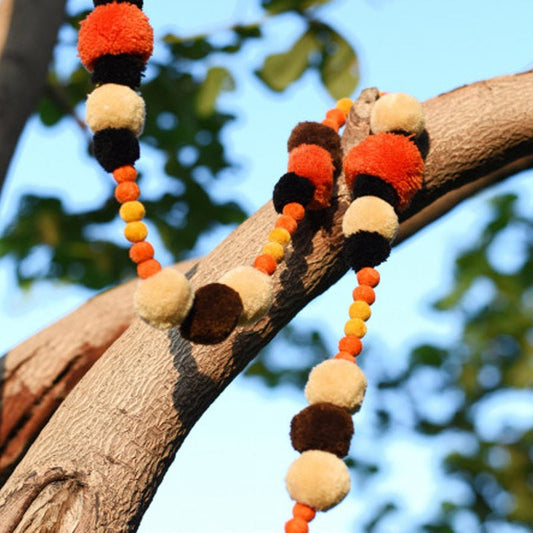 Pompom garland, earth colours, handmade, halloween decor, bohemian, home decor, size 1 mt