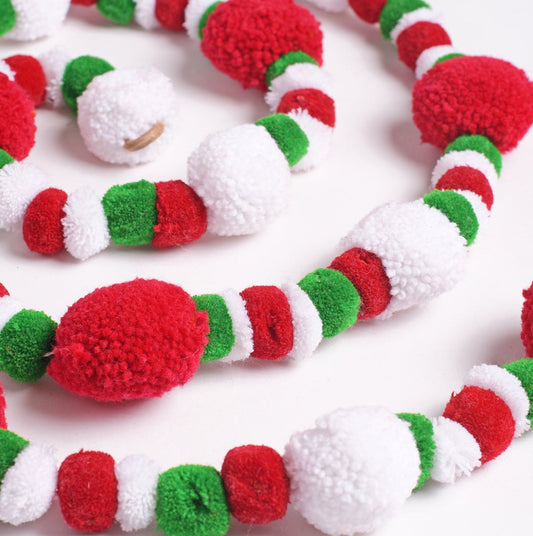 Christmas decor, Pompom garland, handmade, holiday decor, home decor, size 1 mt