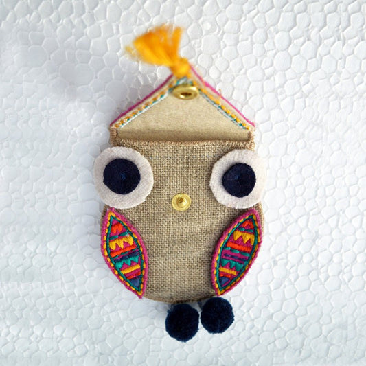 Owl coin bag, wire holder, handmade, gift, bohemian, moroccan size 4X3 inches