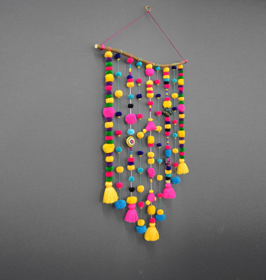 Pompom garland, multicoloured, handmade, gift, bohemian, home decor, size 1 mt