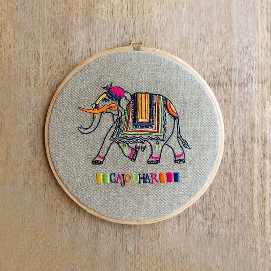 Hoops Wall Art - Flock collection - Gajodhar the Elephant on Hoop or wooden frame