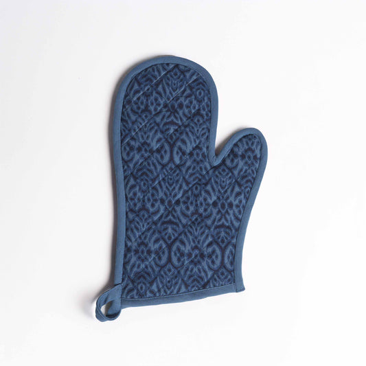 Ikat Indigo blue quilted oven mitt, quilted potholder, kitchen accessory, pure cotton- Available in Sets