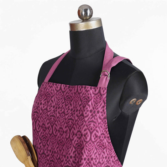 Ikat Print Plum Cotton Duck Apron with Pocket – Adjustable Straps - 27X35 inches