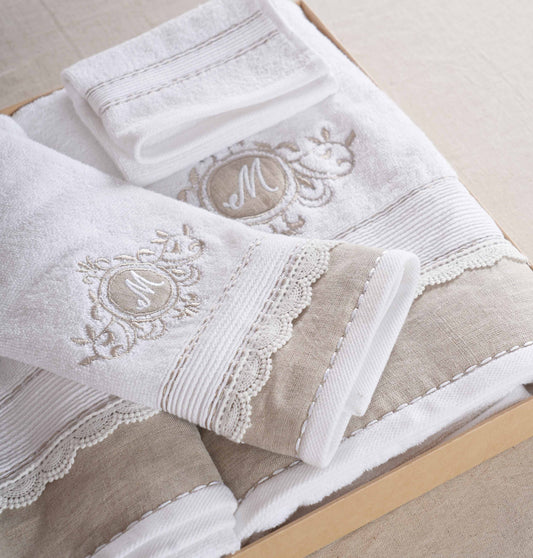 Luxury Monogrammed Organic Cotton Towel Set – 4 Piece | Customizable with Linen Appliqué & Embroidery
