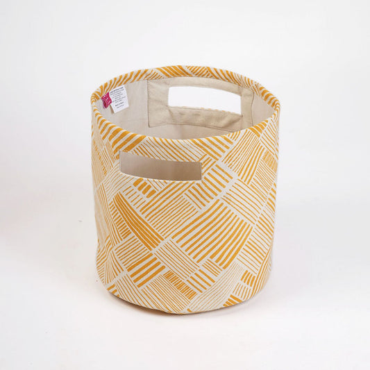 MODERN RETRO - Canvas basket, mustard yellow stipe print, storage basket, fabric bin, sizes available