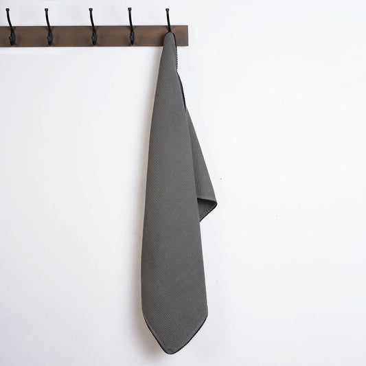 MODERN RETRO - Grey waffle cotton Kitchen Towel with black micro pompom lace edging, size 20"X28"