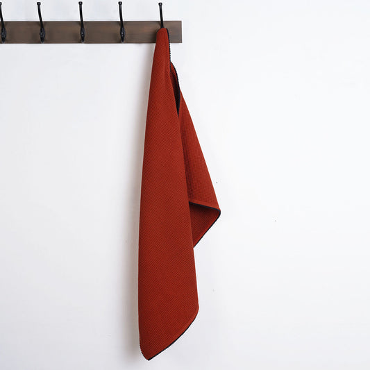 MODERN RETRO - Terracotta waffle cotton Kitchen Towel with black micro pompom lace edging, size 20"X28"