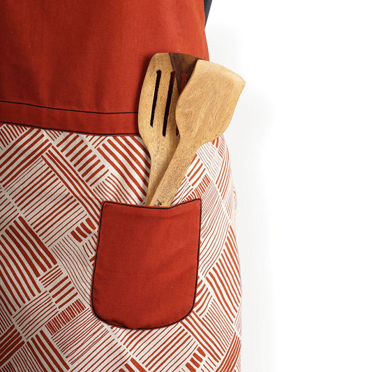 MODERN RETRO - terracotta stripe print cotton apron, size 27"X 35"