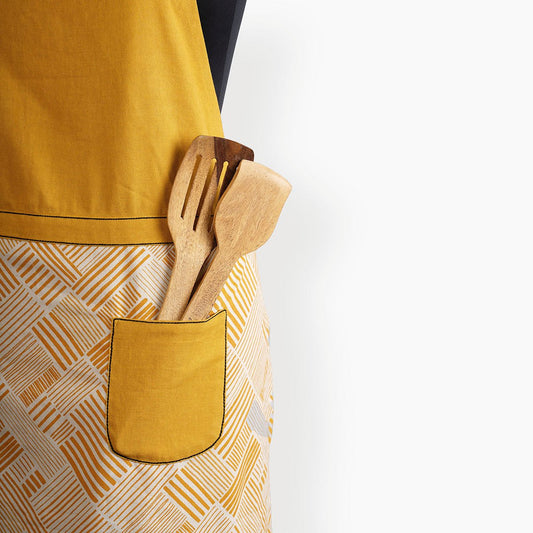 MODERN RETRO - Mustard Yellow stripe print cotton apron, size 27"X 35"