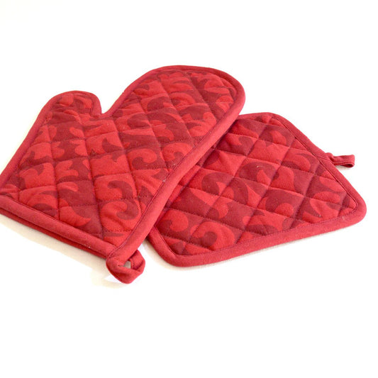 SHYRDAK Red color Pot holder and Glove, moroccan print, cotton kitchen accessories