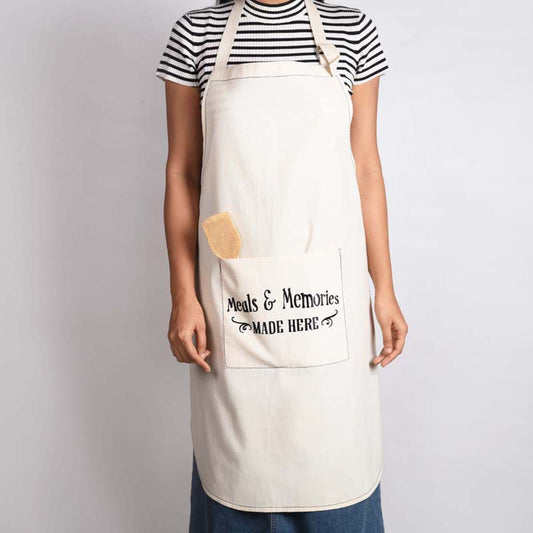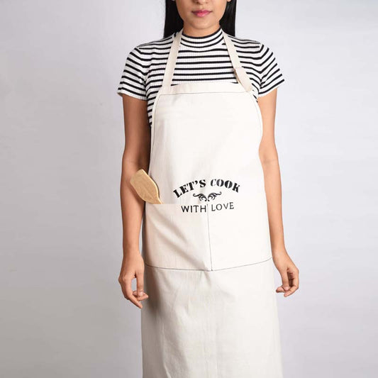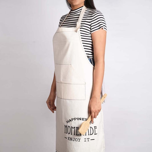 Off white, cotton apron, embroidered, kitchen, housewarming gift
