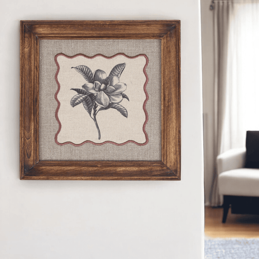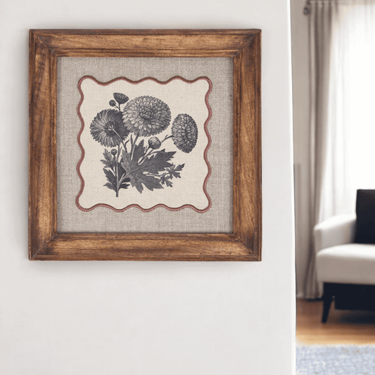 BOTANICAL wall art, Chrysanthmum motif with teak wooden frame, 12X12 inches