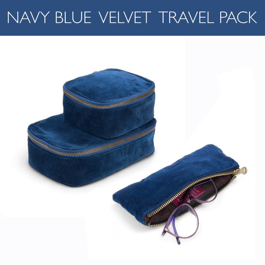 GIFT PACK - Set of 2 nesting boxes and Eye glass case in NAVY BLUE velvet