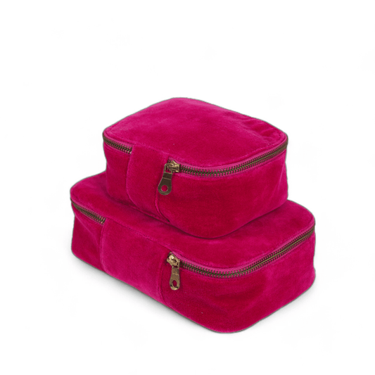 Set of 2 nesting boxes in Fuschia colour velvet - travel accessory