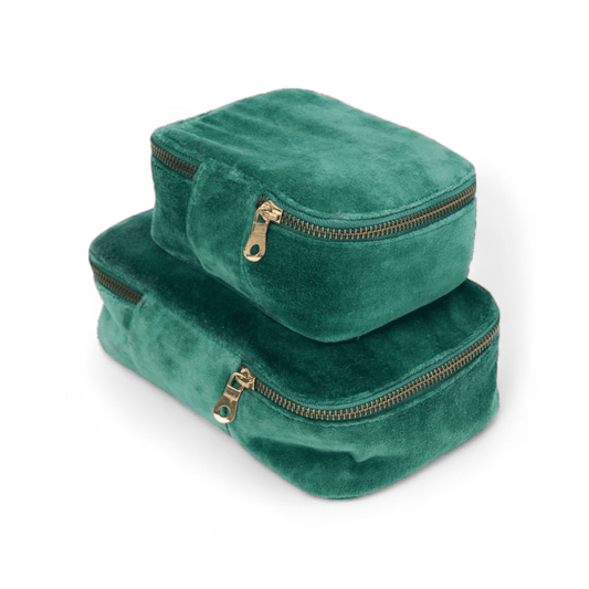 Set of 2 nesting boxes in BOTTLE GREEN colour velvet - travel accessory