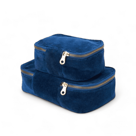 Set of 2 nesting boxes in NAVY BLUE colour velvet - travel accessory