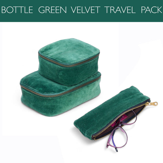 GIFT PACK - Set of 2 nesting boxes and Eye glass case in BOTTLE GREEN velvet