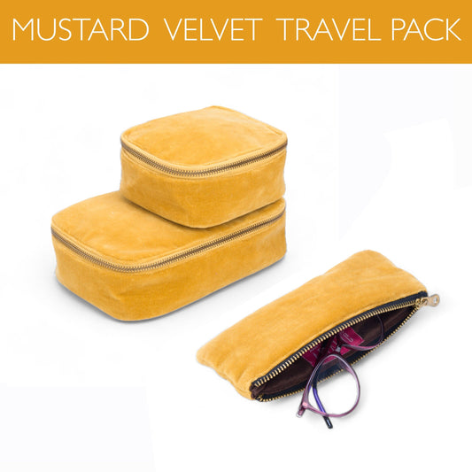 Set of 2 nesting boxes in MUSTARD colour velvet - travel accessory