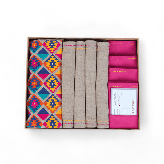 TABLE LINEN GIFT PACK - FOLK Kilim collection in pure Linen fabric - 3 colour option available