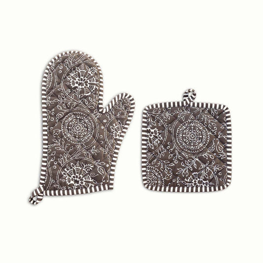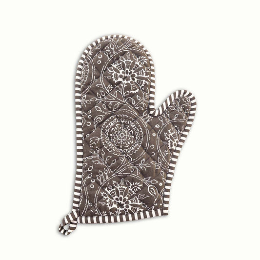 Kalamkari Grey quilted oven mitt, quilted potholder, kitchen accessory, pure cotton
